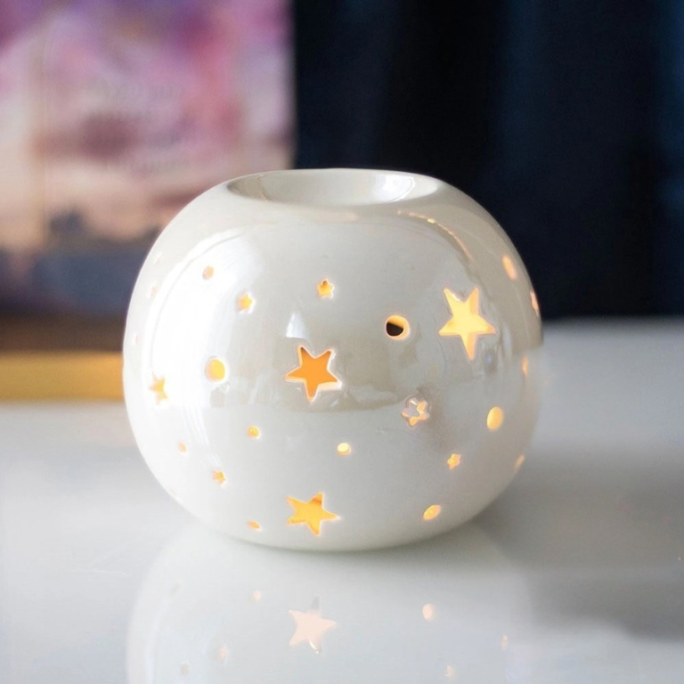 Un petit astre dans votre intérieur… Ce brûle-parfum en forme de boule parsemée d’étoiles projette une lumière douce et magique. Parfait pour illuminer vos soirées d’une ambiance féérique.