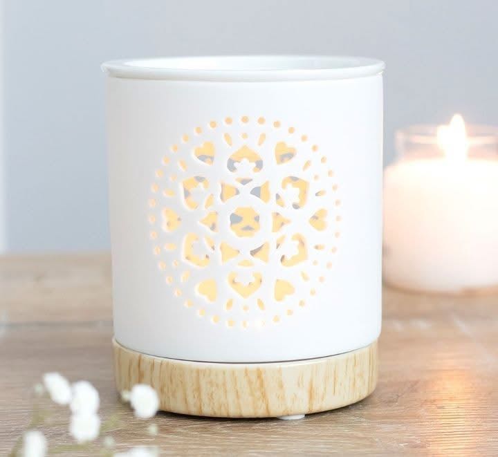 Un souffle de douceur et d’équilibre… Ce brûle-parfum orné de mandala finement incrusté invite à la méditation et à la détente. Sa lumière tamisée et ses motifs feront rayonner vos moments de calme.