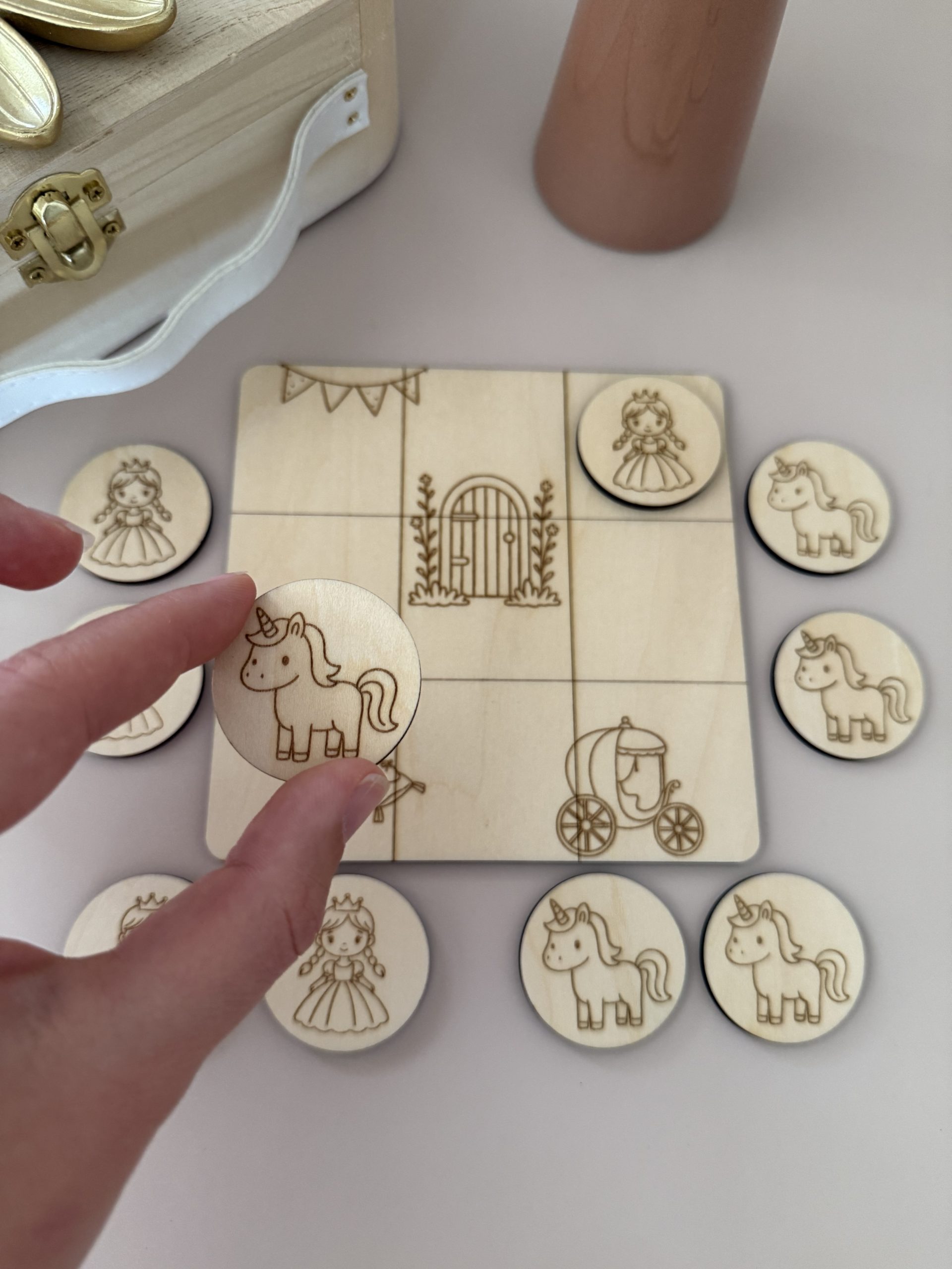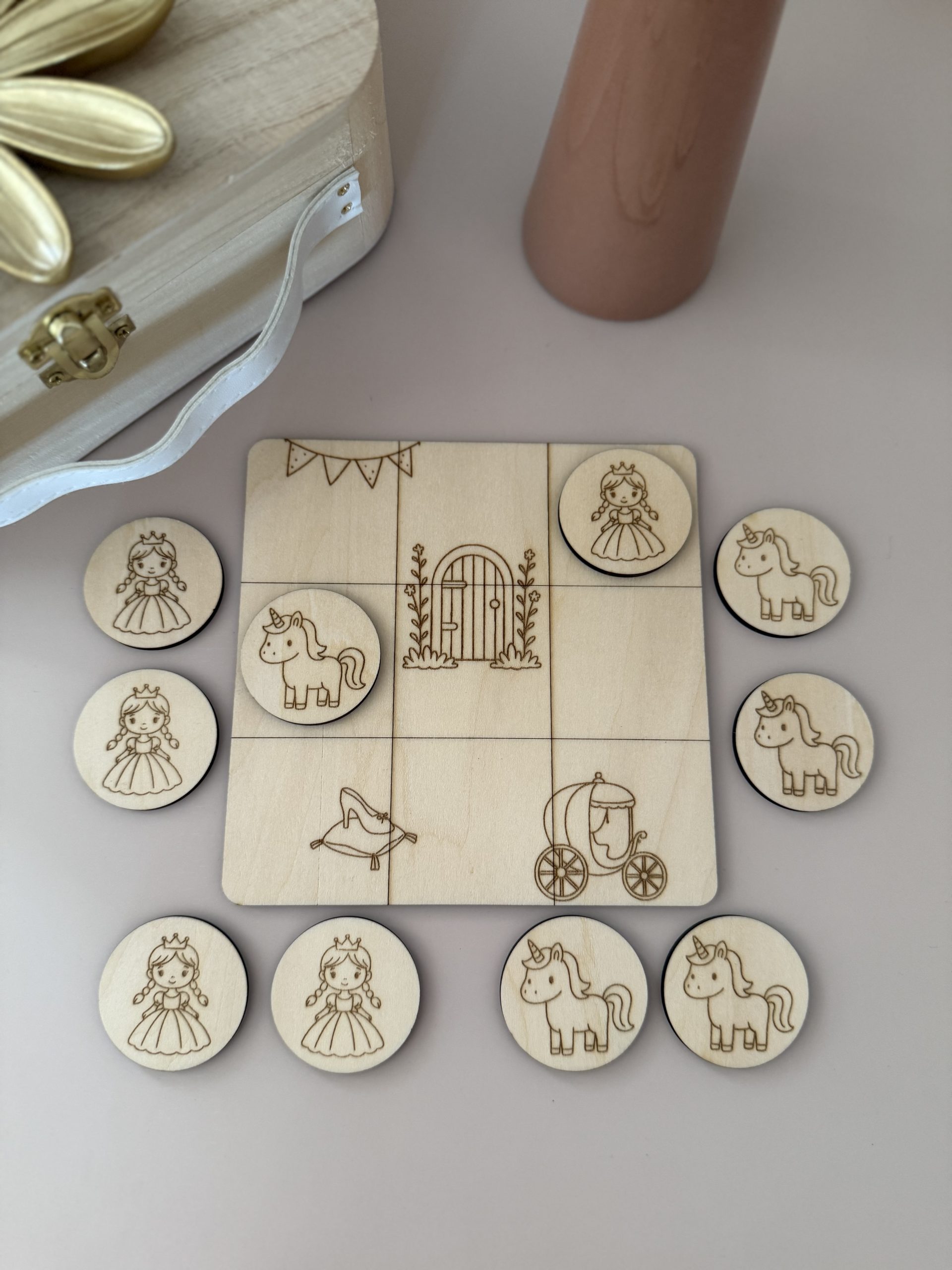 Princesse et licorne s’affrontent autour d’un joli décor de conte, pour transformer une simple partie en moment magique.