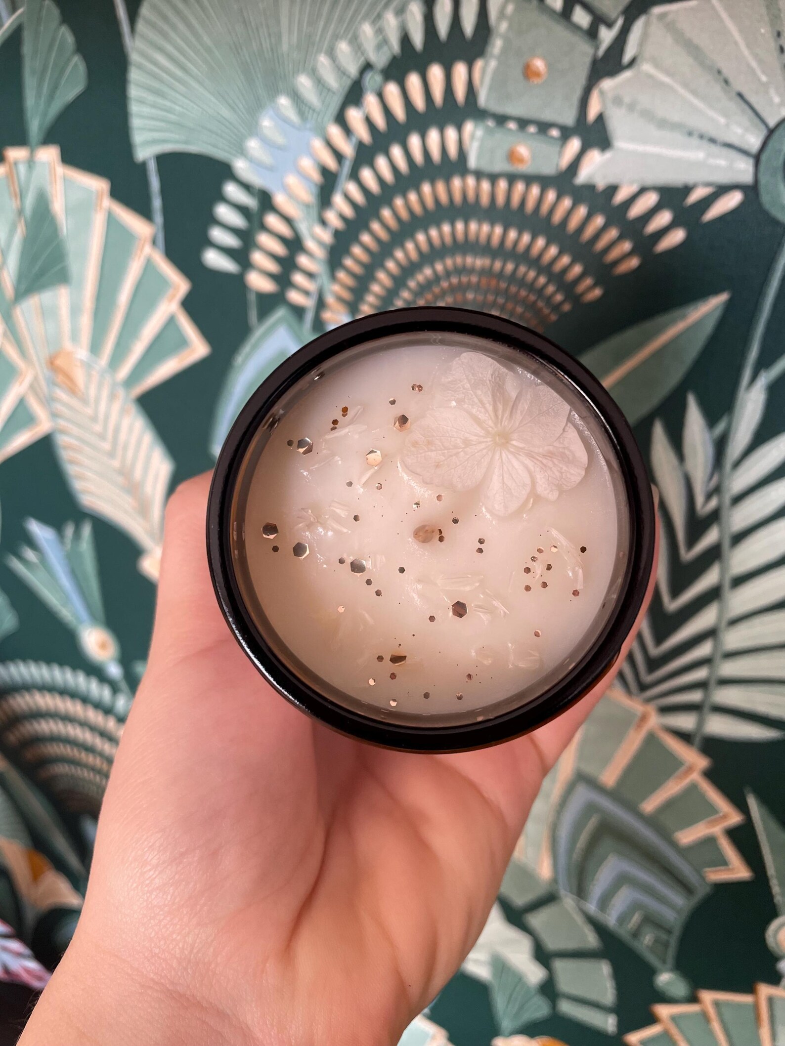 Les poétiques sont une ode à la nature, à la fraîcheur et à la douceur. Coulées et décorées à la main dans mon atelier, elles sont sublimées de fleurs ignifugées soigneusement sélectionnées tels que l’hortensia, l’eucalyptus ou encore la rose, pour un rendu naturel et poétique.