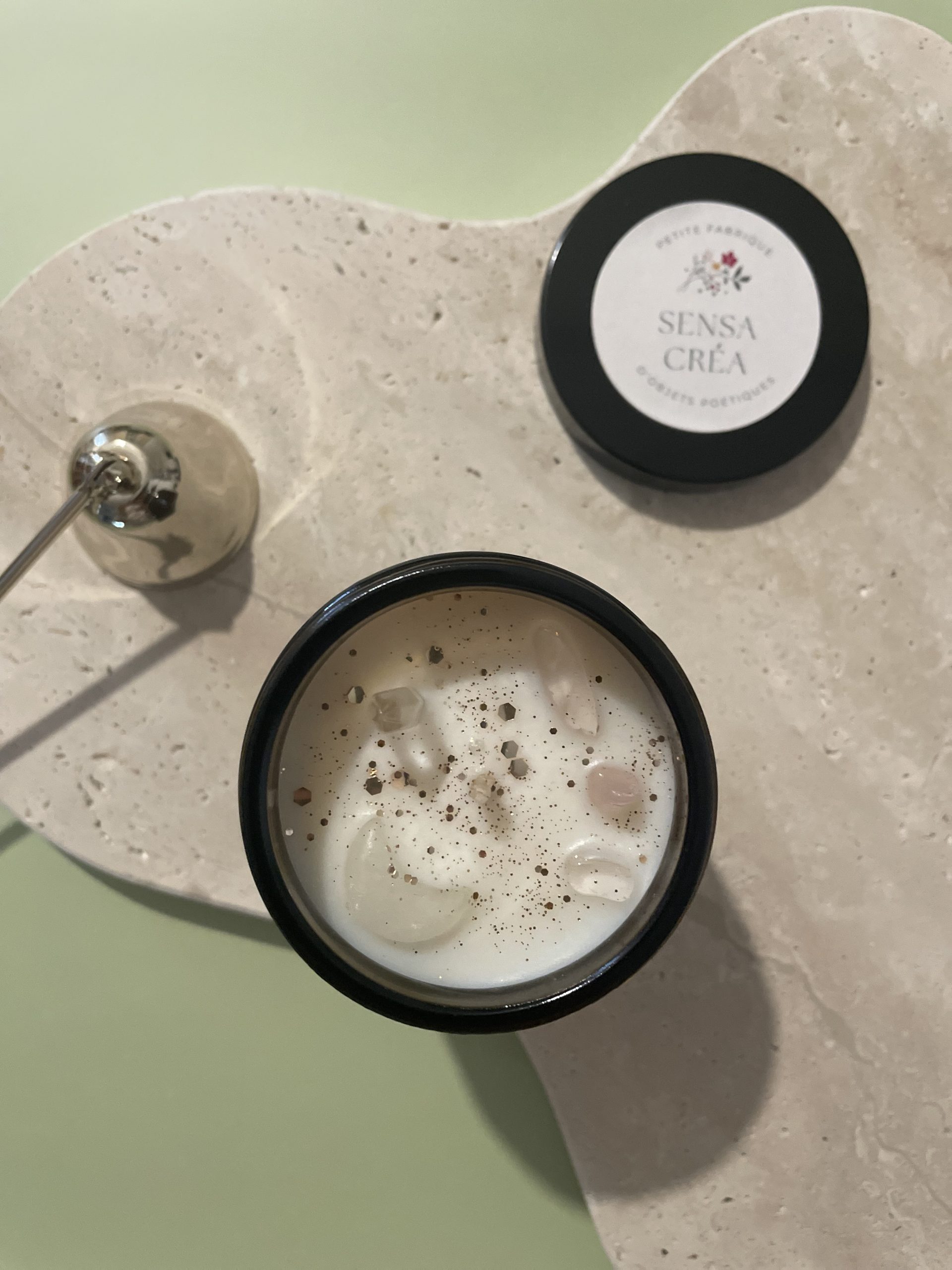 Fabriquées à partir de cire végétale de soja et coco (sans OGM, sans pesticide, sans cruauté animale, d’origine européenne) et parfumées de senteurs raffinées élaborées à Grasse, garanties sans CMR ni phtalates, elles sont un véritable rituel de douceur à offrir ou pour se faire plaisir. Présentées dans un contenant un verre épuré joliment étiqueté, elles allient élégance, pureté et intention.