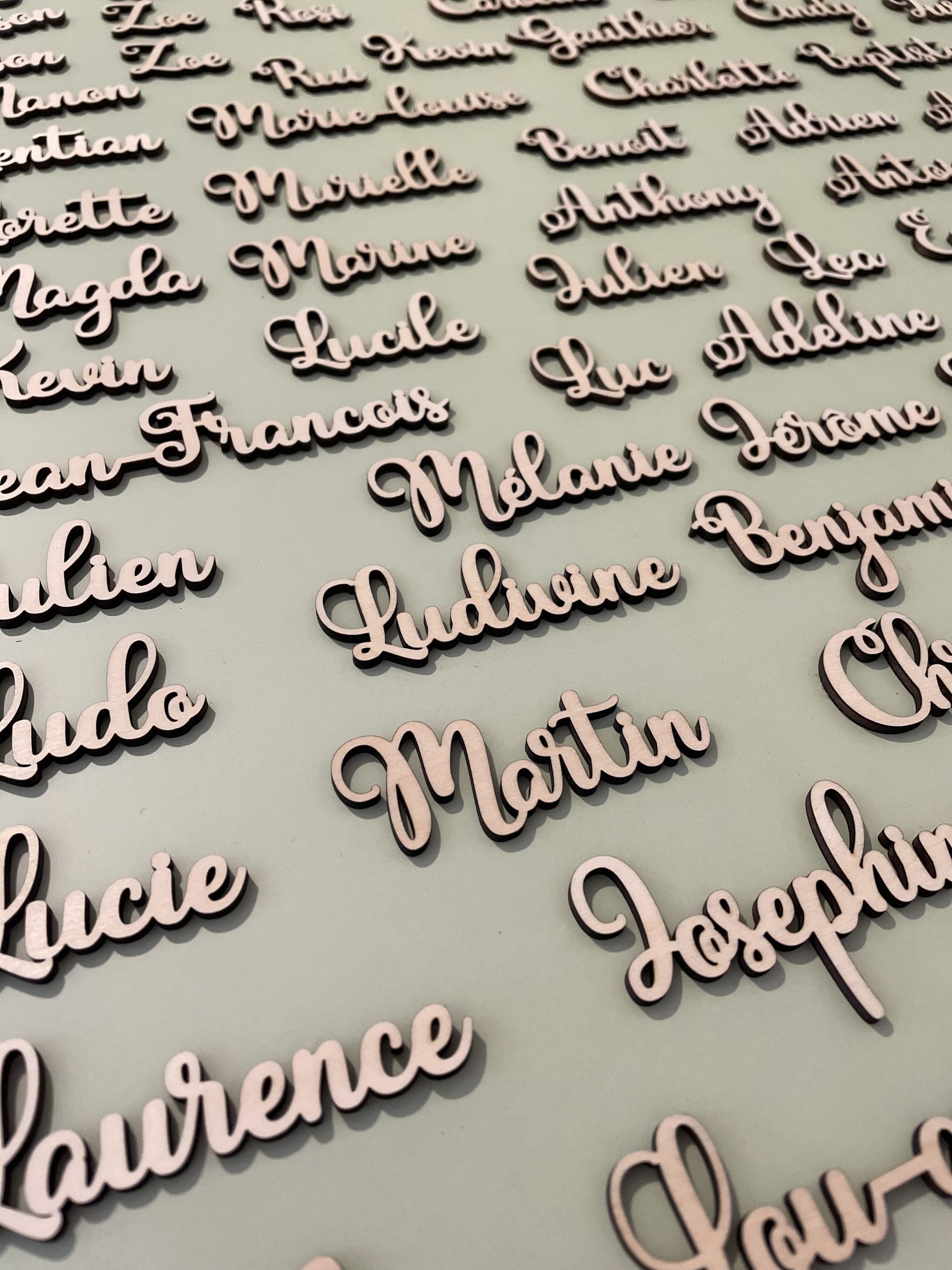 Prénom découpé, gravure fine, formes douces et détail floraux, chaque création est réalisée avec soin dans mon atelier pour sublimer vos évènements: mariage, baptême, anniversaire ou tout autre moment festif selon le thème souhaité.