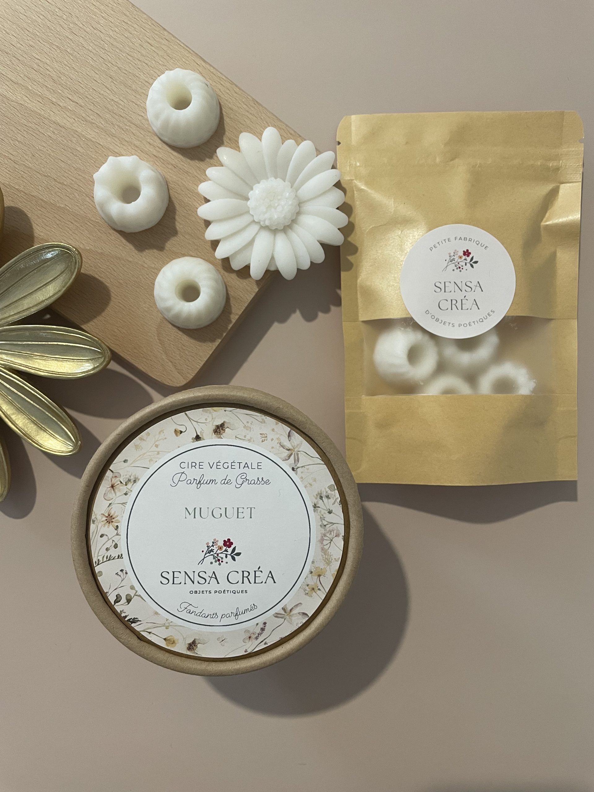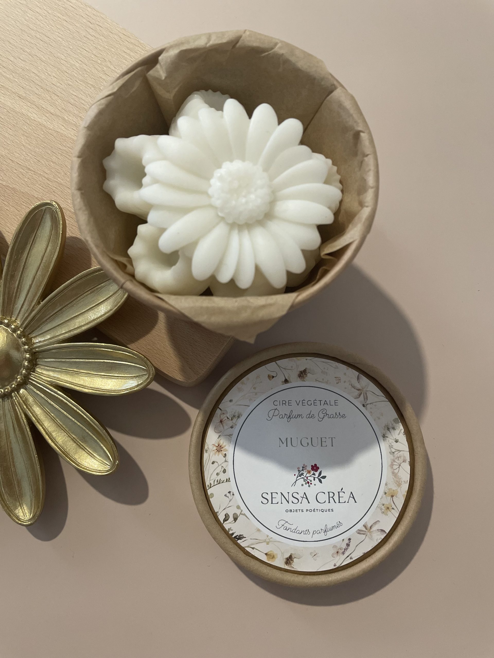 Laissez-vous emporter par la délicatesse de nos fondants parfumés au muguet, en forme de fleur et décorés de fleurs séchées. Leur parfum floral et raffiné vous emmène tout droit dans un joli jardin printanier. Une touche de fraîcheur pour parfumer votre intérieur avec élégance. Un cadeau idéal pour « se » faire plaisir.
