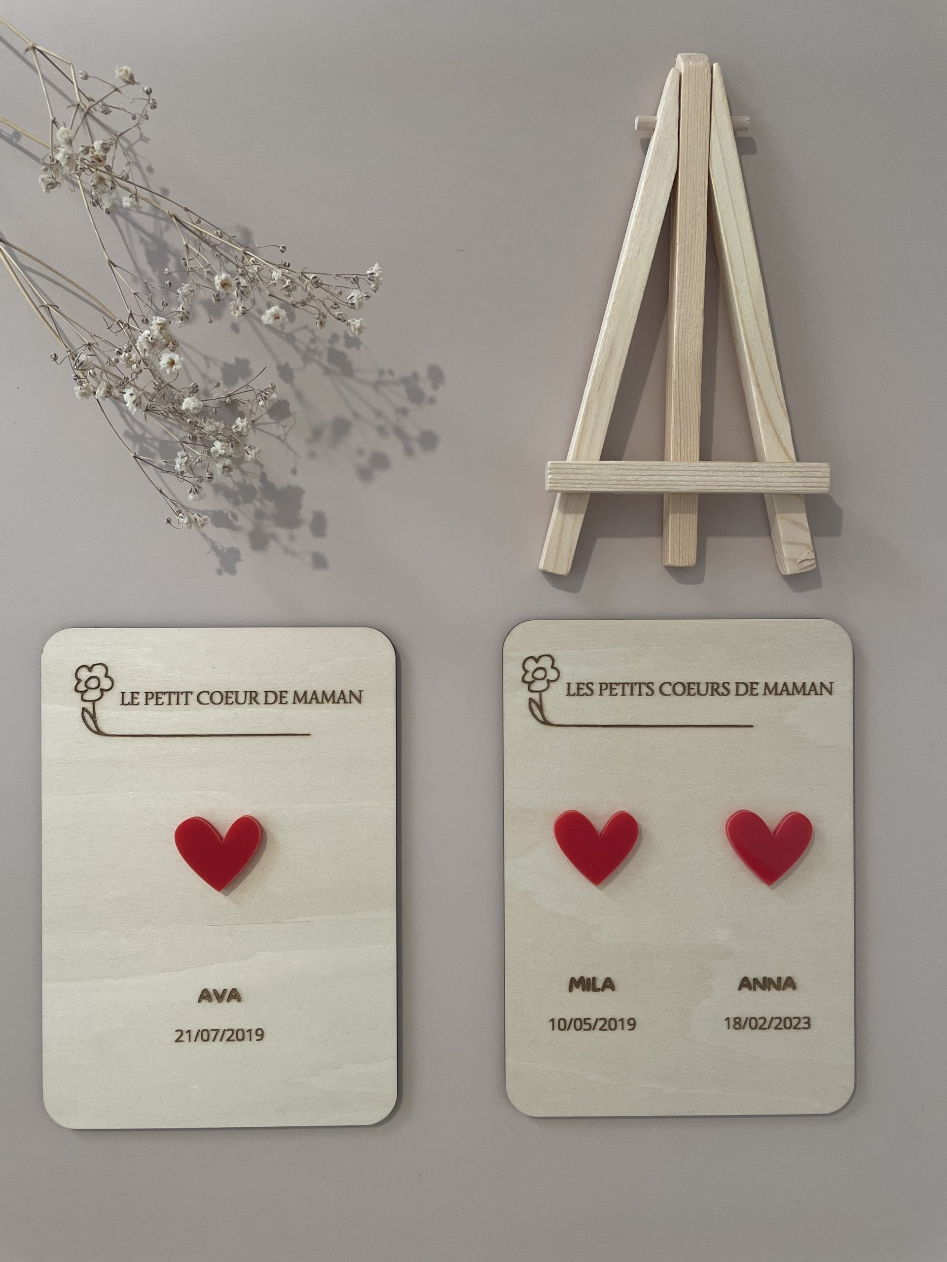 Texte gravé : “Les petits cœurs de maman” ou “Les petits cœurs de mamie”